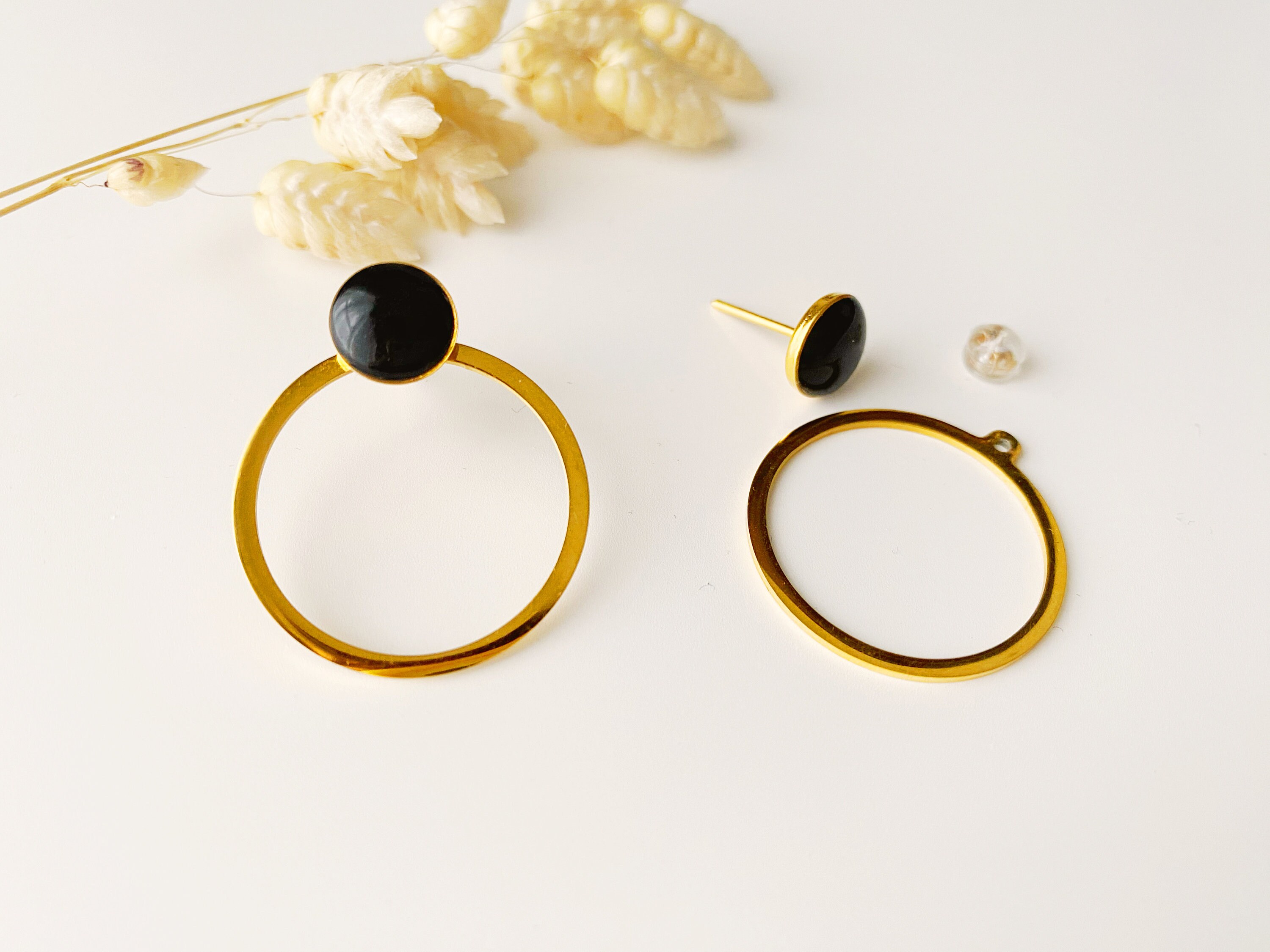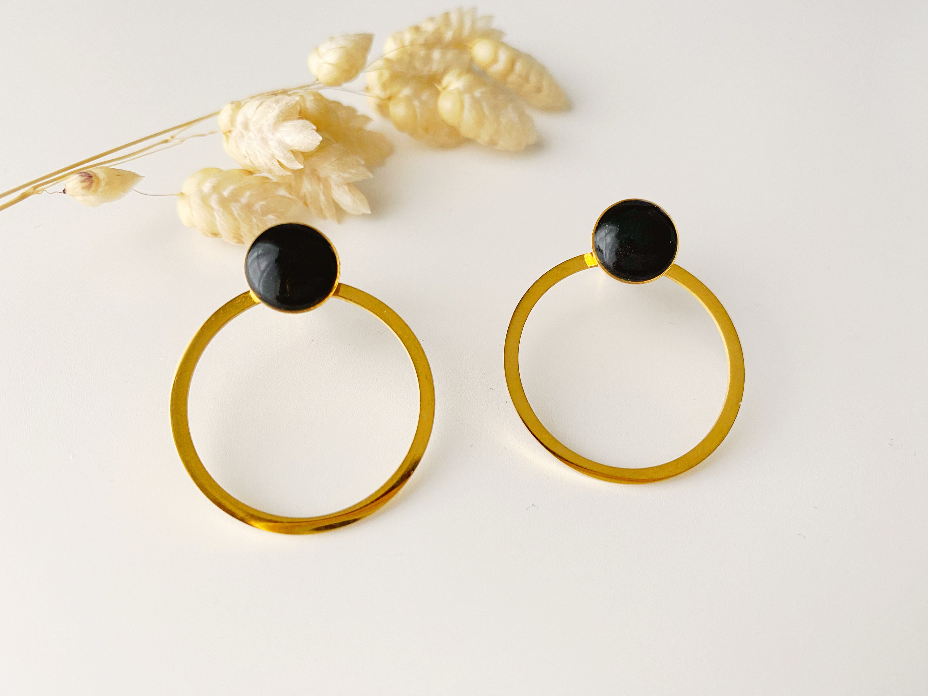 Pretty pair of graphic and refined earrings, for a chic, minimalist and contemporary style. They are adjustable to your taste and according to your desires, to wear with or without the ring.