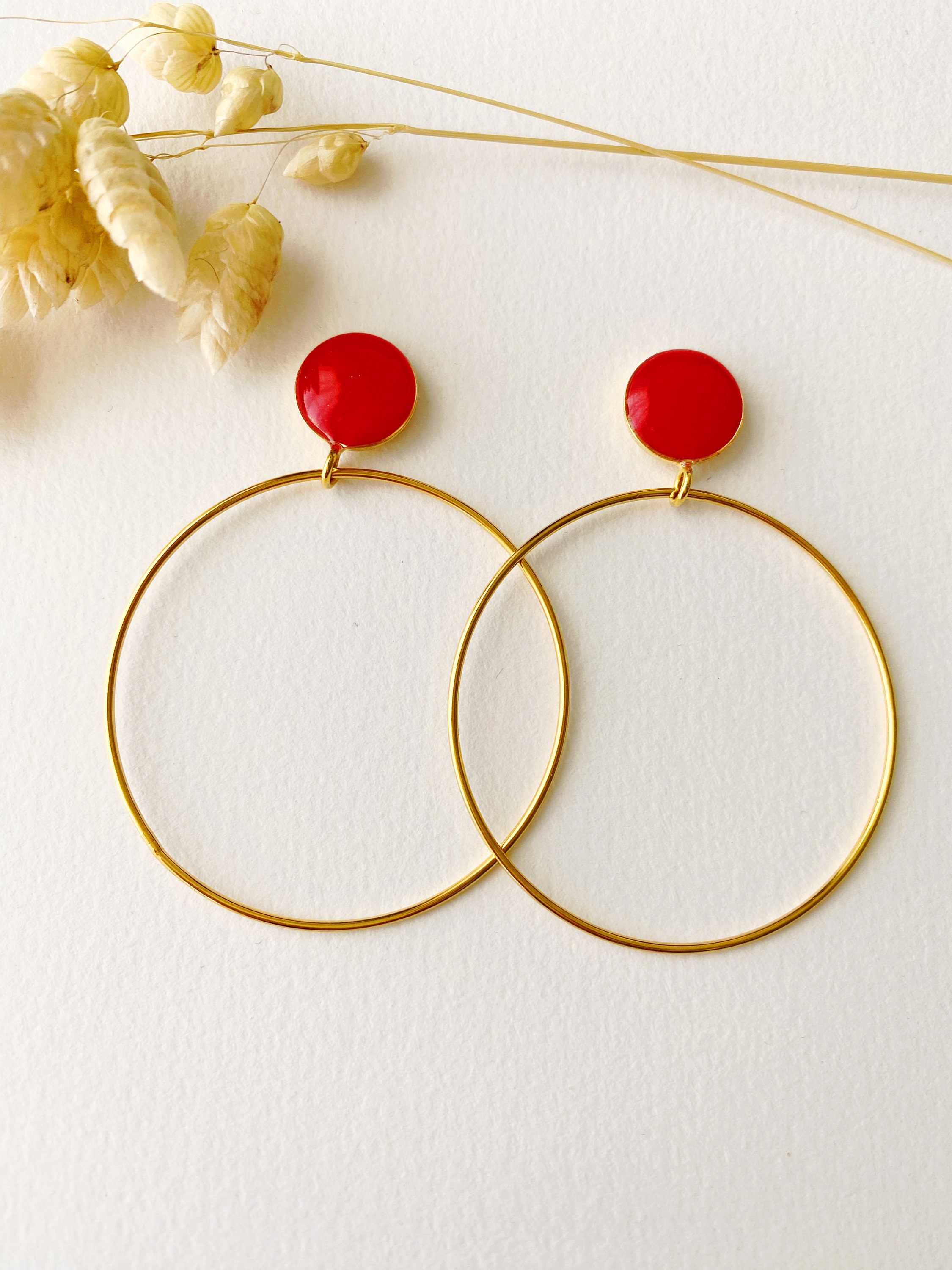 Jewel composed of a clay cabochon covered with a resin providing finesse, shine and lightness and a thin golden ring. Very light earrings.