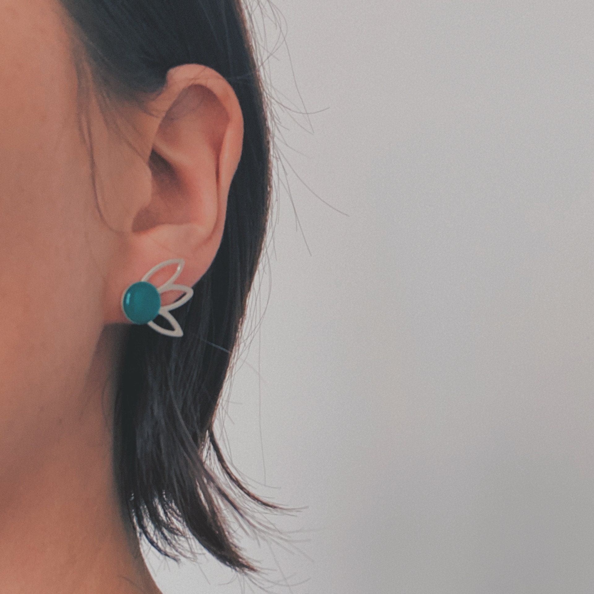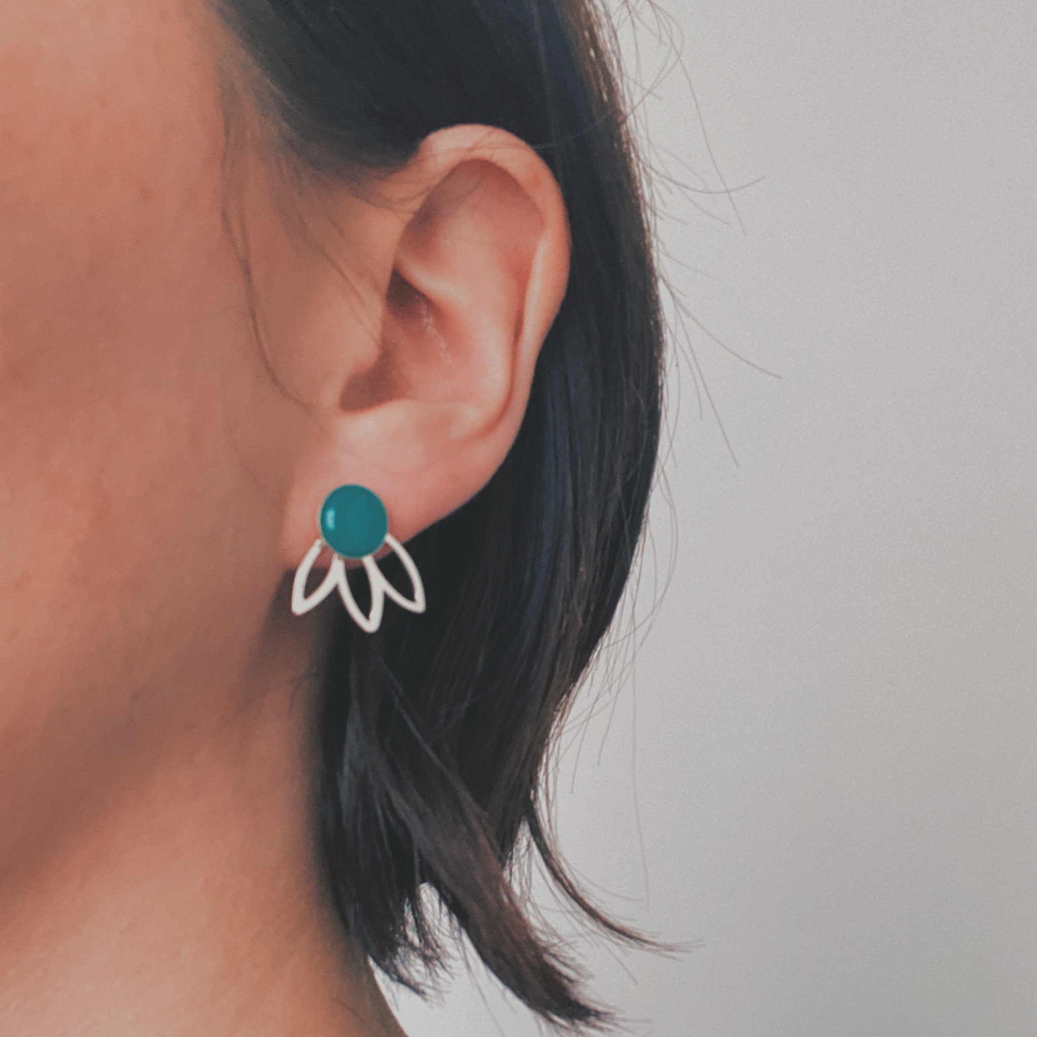 Pretty pair of graphic and refined earrings, for a chic and minimalist hippie style. They are adjustable to your taste and according to your desires, to wear with or without the fan.