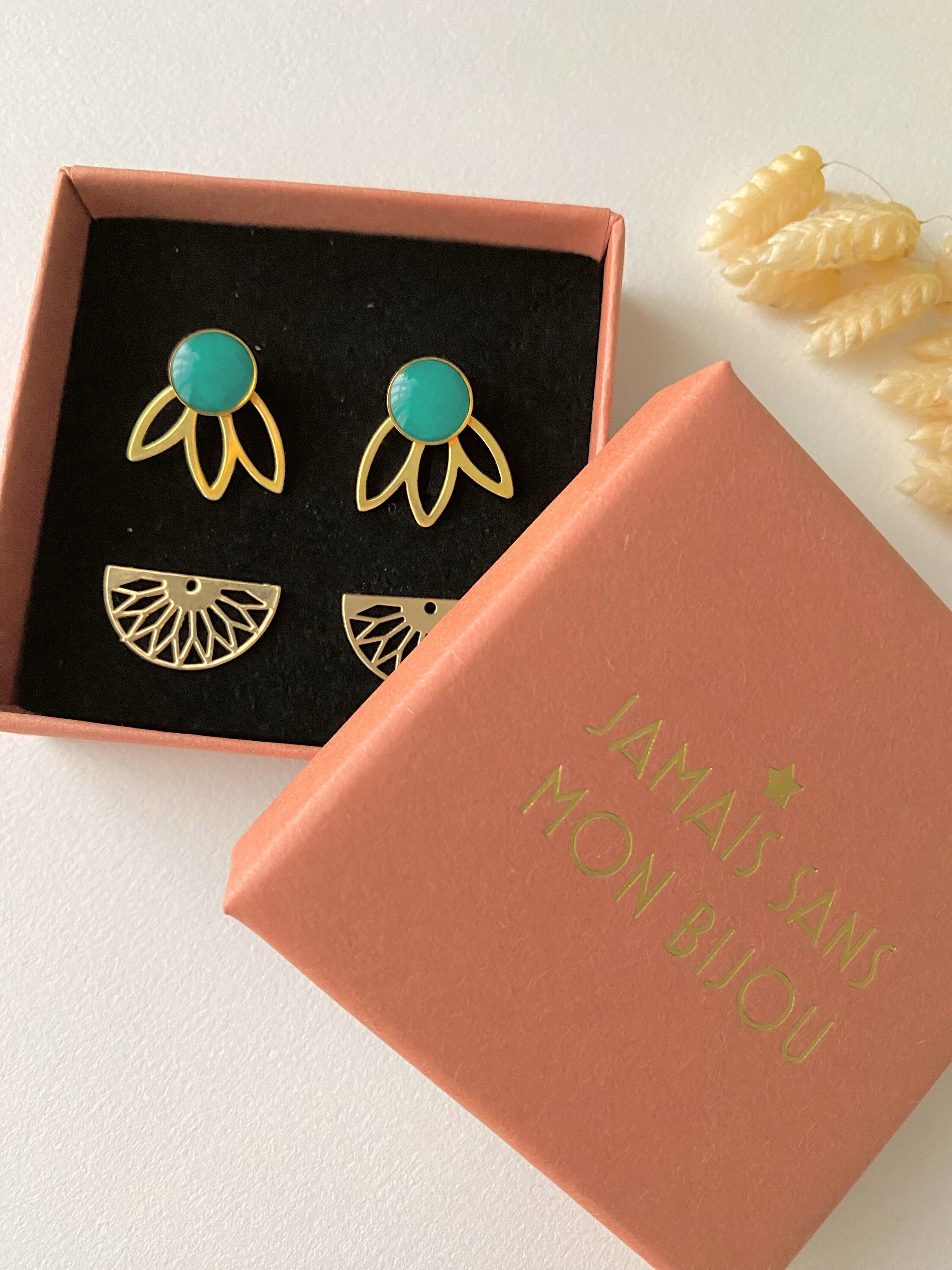 Pretty pair of graphic and refined earrings, for a chic and minimalist hippie style. They are adjustable to your taste and according to your desires, to wear with or without the fan.