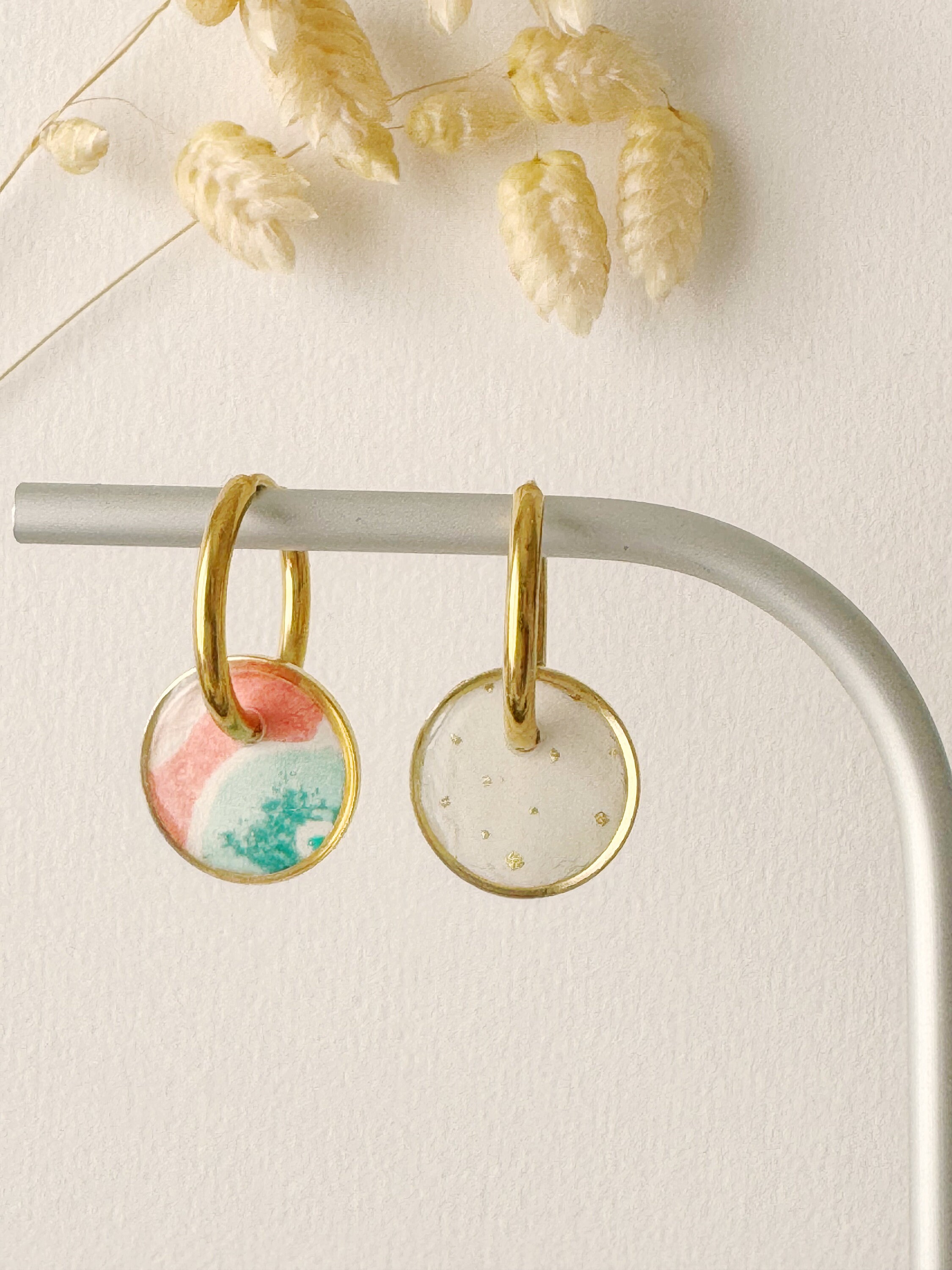 Pretty pair of graphic and refined earrings, for a chic and minimalist hippie style. They are adjustable to your taste and according to your desires, to wear with or without the double-sided pendant.