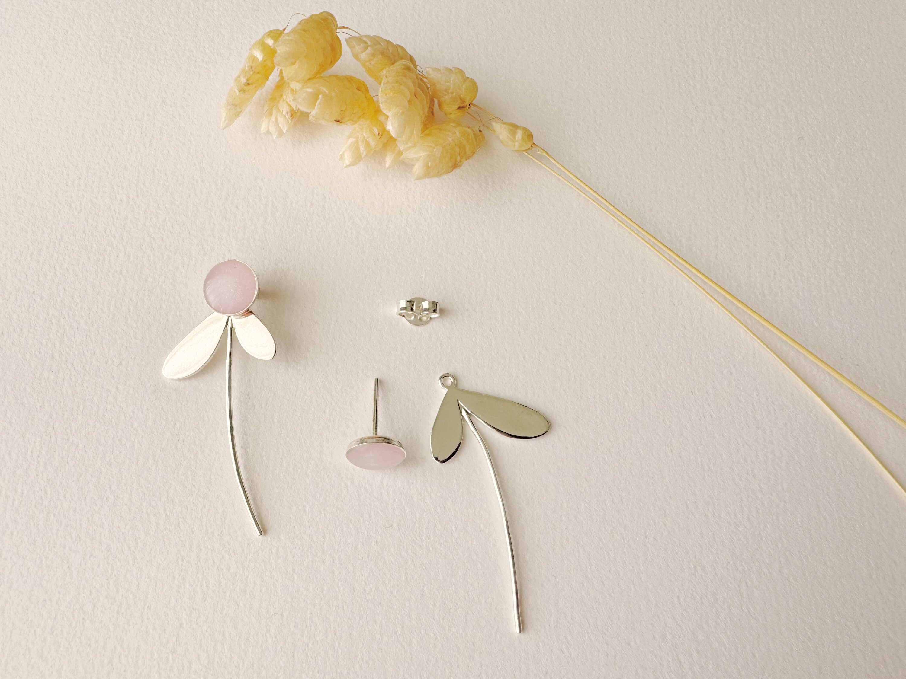 Pretty pair of floral and refined earrings, for a chic, minimalist and contemporary style. They are adjustable to your taste and according to your desires, to wear with or without the petals.