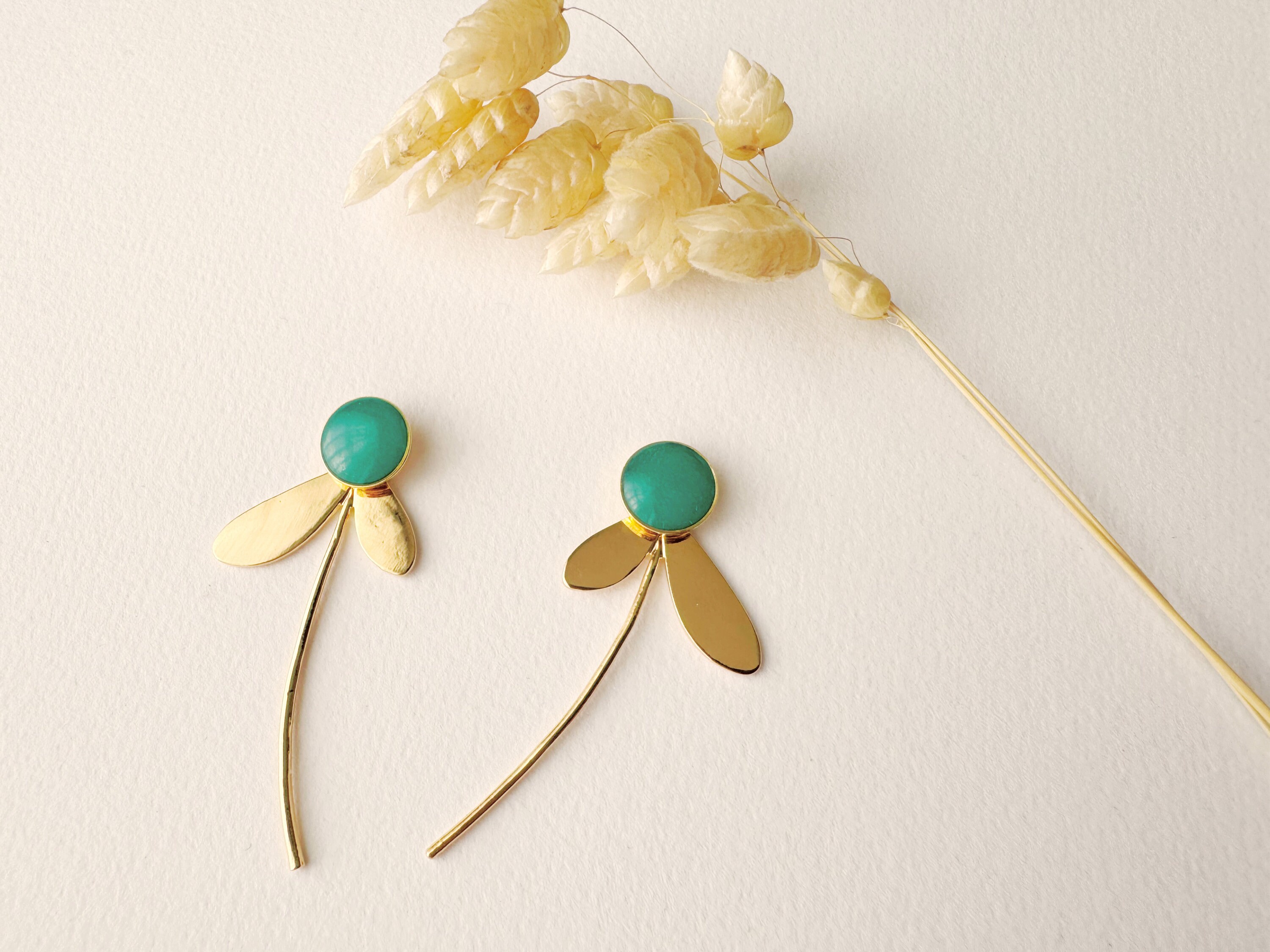 Pretty pair of floral and refined earrings, for a chic, minimalist and contemporary style. They are adjustable to your taste and according to your desires, to wear with or without the petals.