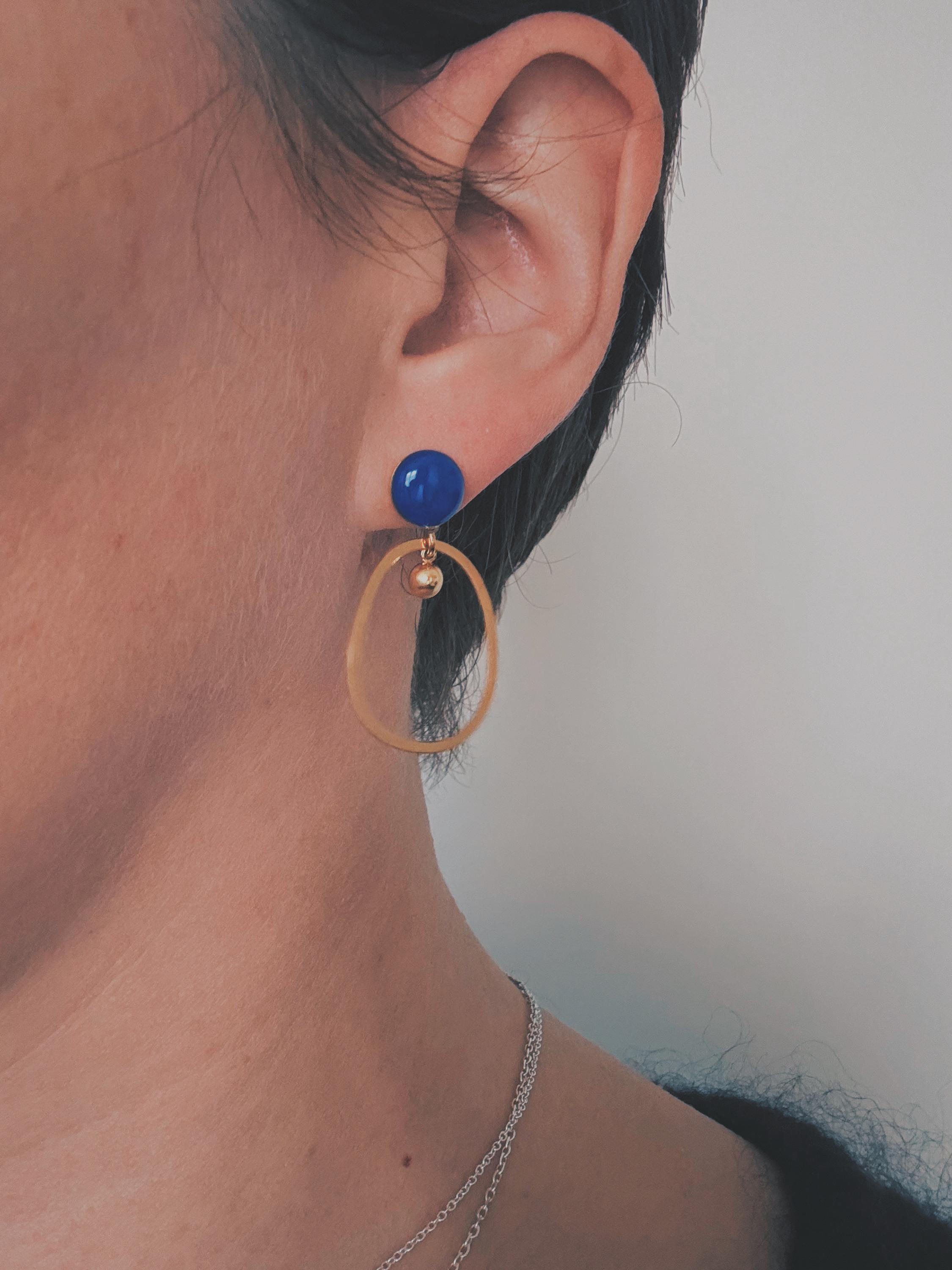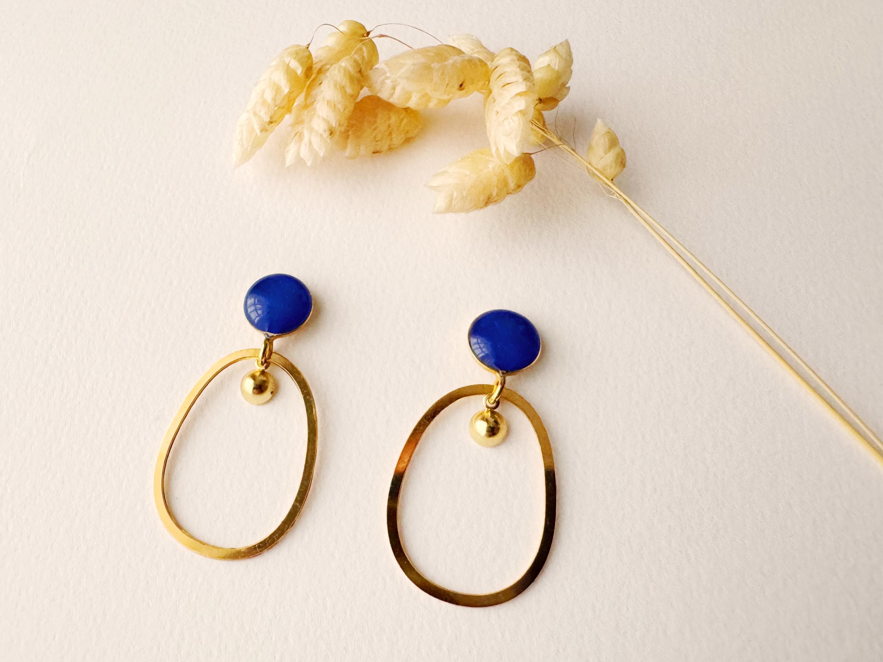 Jewel composed of a clay cabochon covered with a resin which gives it shine, lightness and a beautiful finish, all in stainless steel.