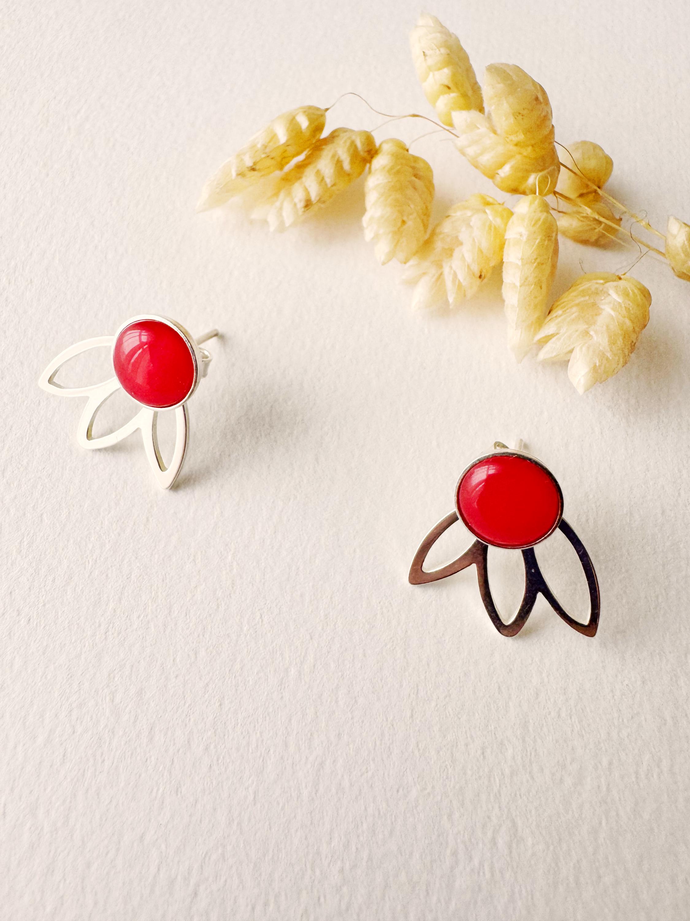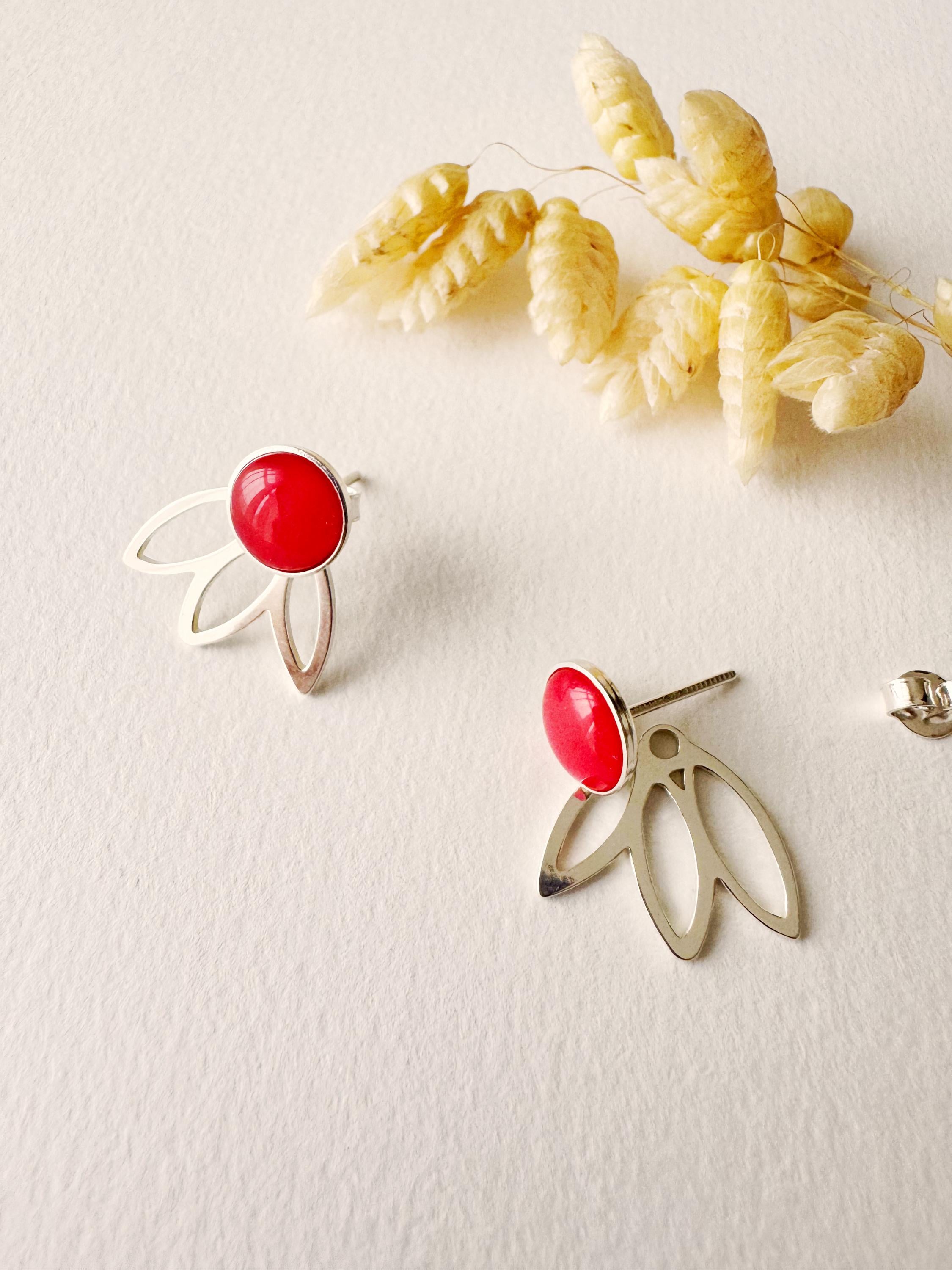 Jewel composed of a clay cabochon covered with a resin which gives it shine, lightness and a beautiful finish and a silver petal sequin.