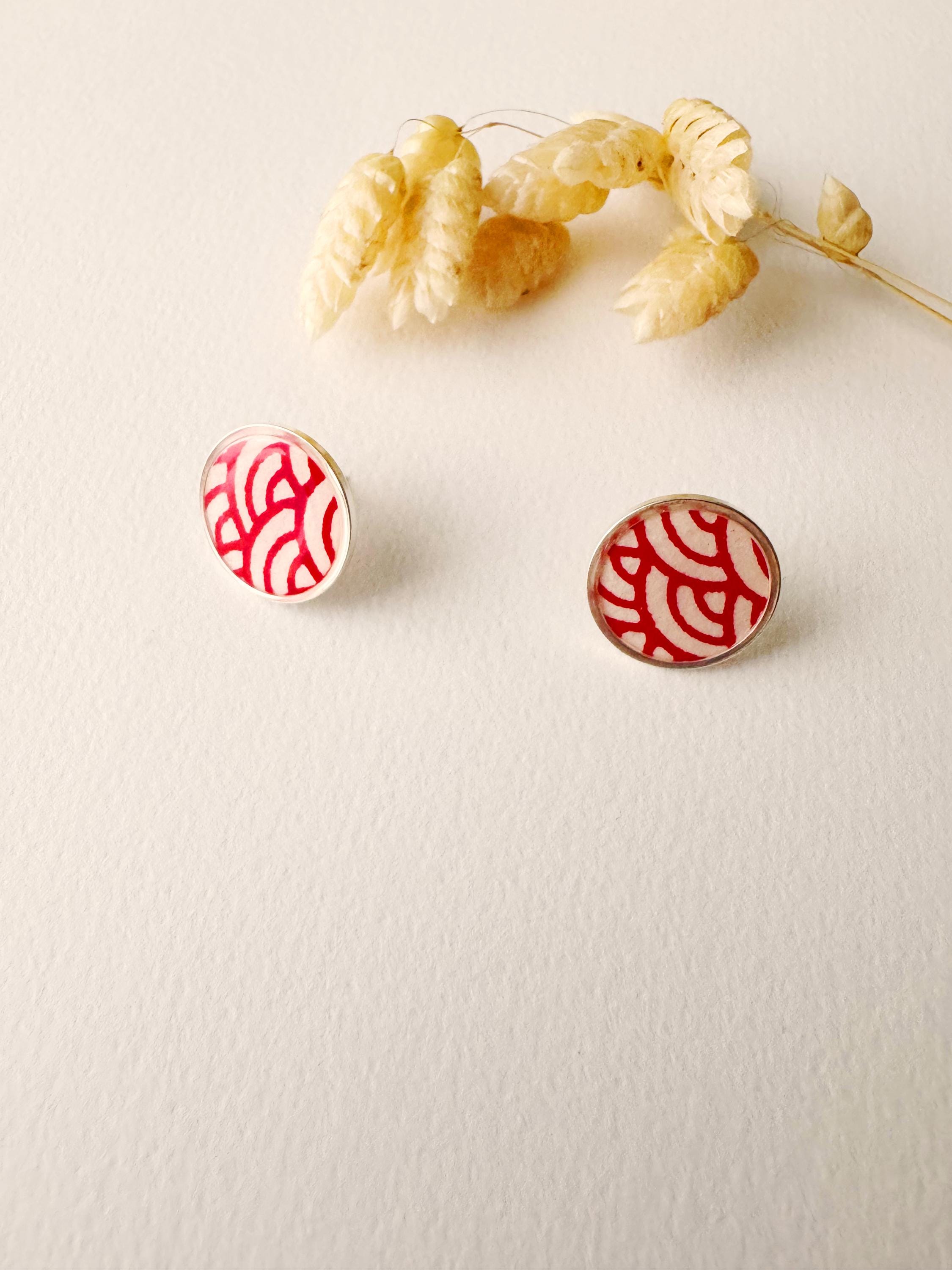 Jewel composed of a Japanese paper cabochon covered with a resin which gives it shine, lightness and a beautiful finish and a fine gold petal sequin.