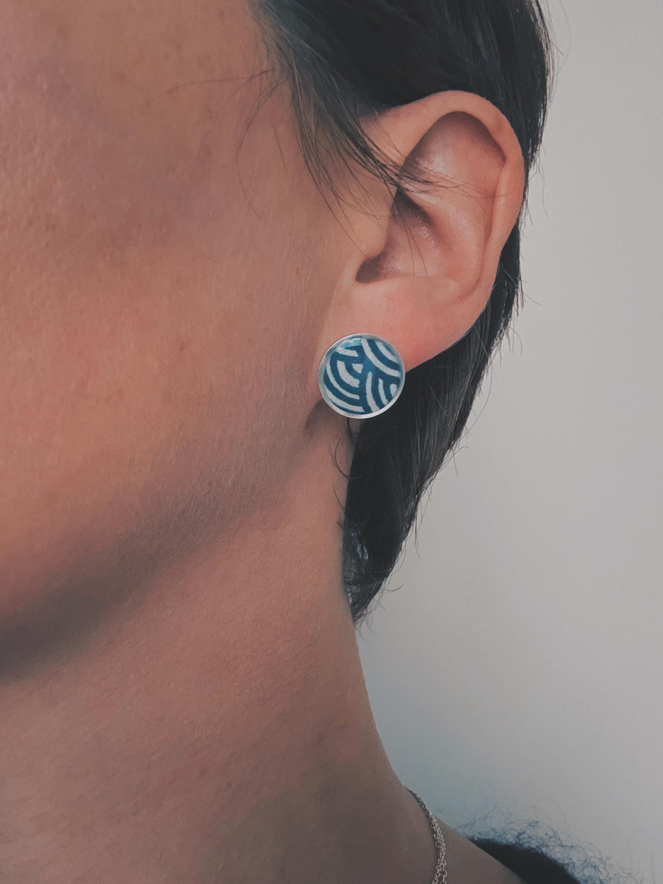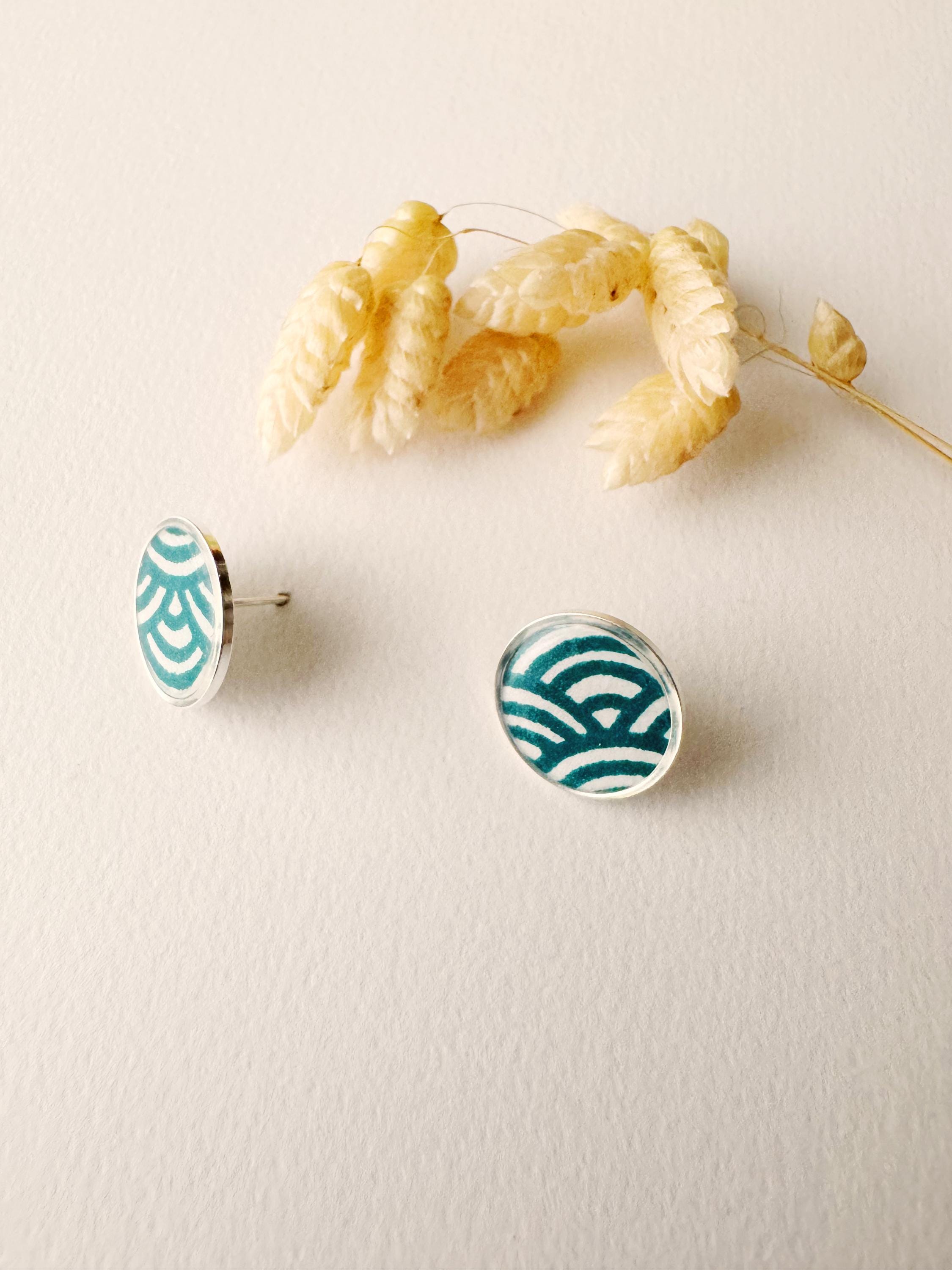 Jewel composed of a Japanese paper cabochon covered with a resin which gives it shine, lightness and a beautiful finish and a fine gold petal sequin.