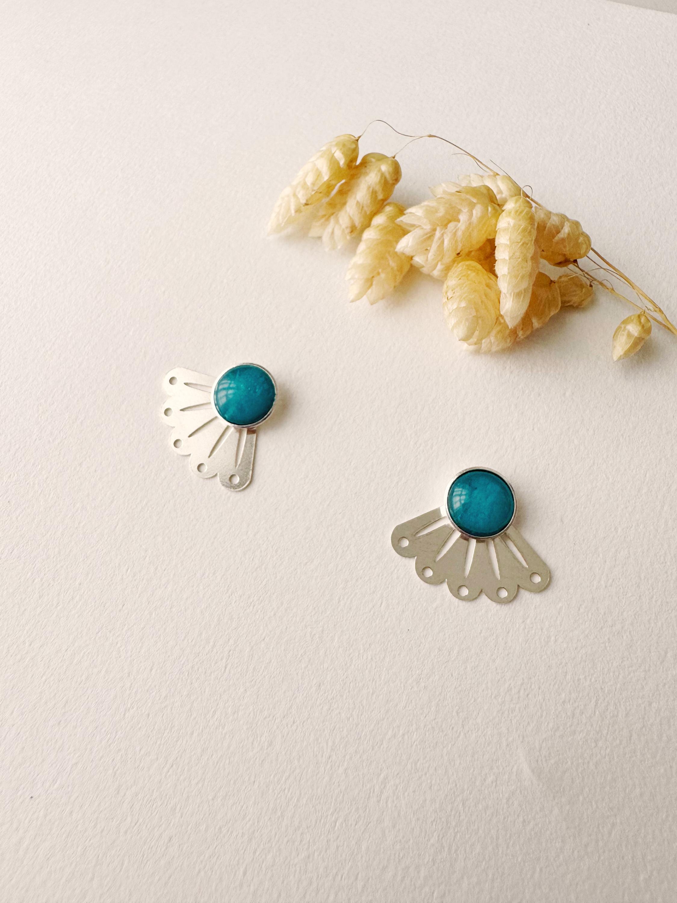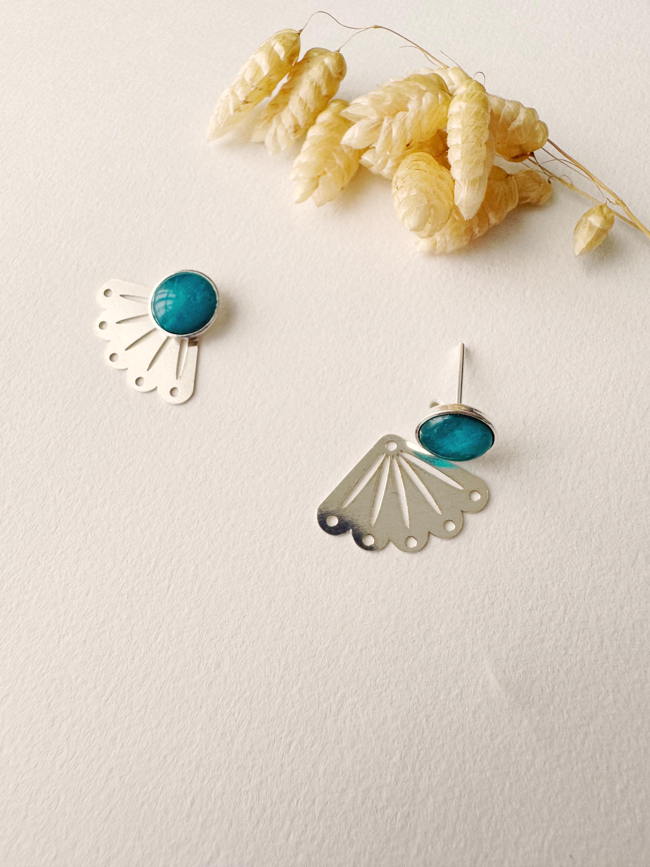 A lovely pair of graphic and sleek earrings for a chic, minimalist, and contemporary look. They can be styled to suit your taste and mood, and worn with or without the fan.