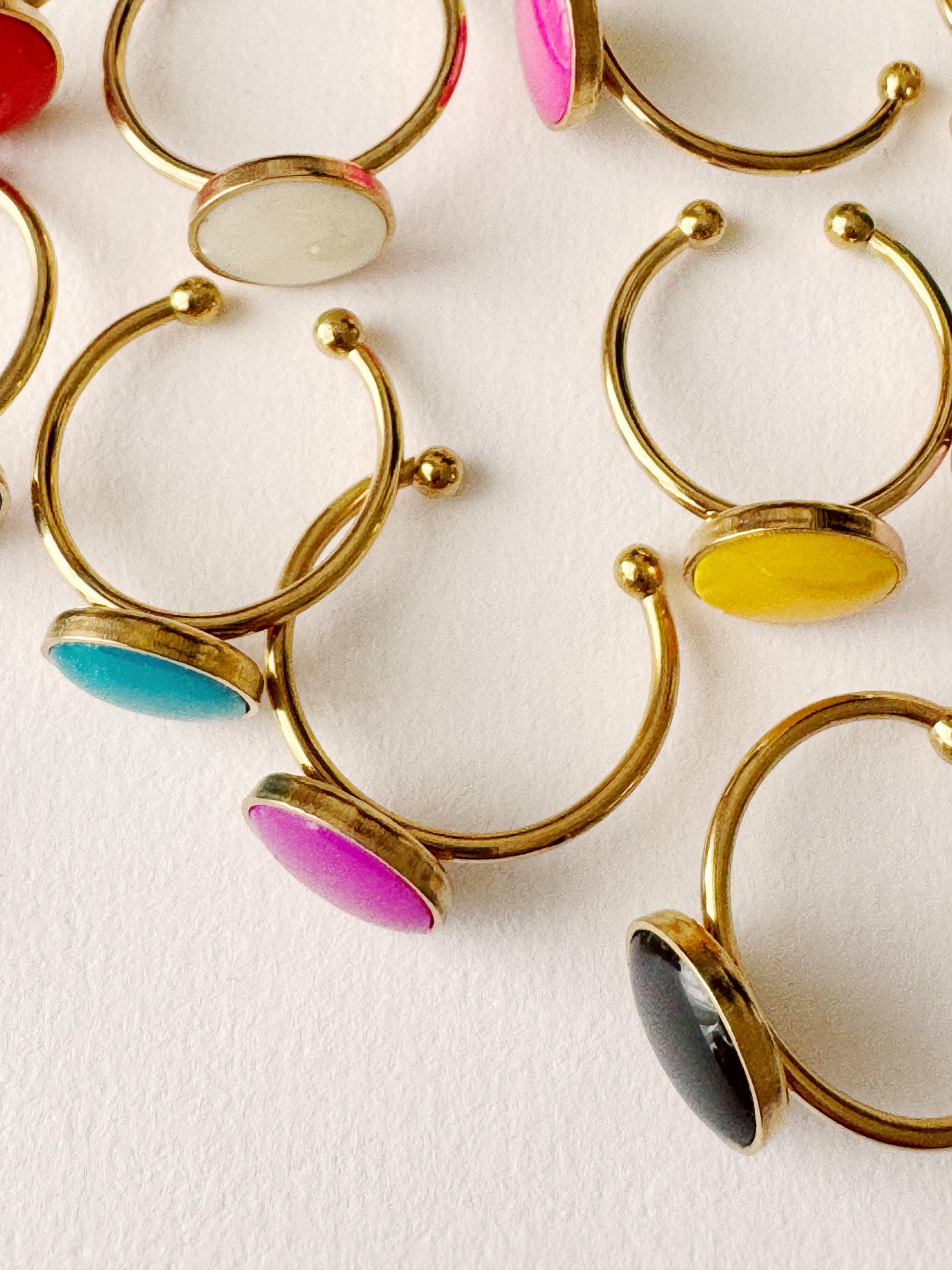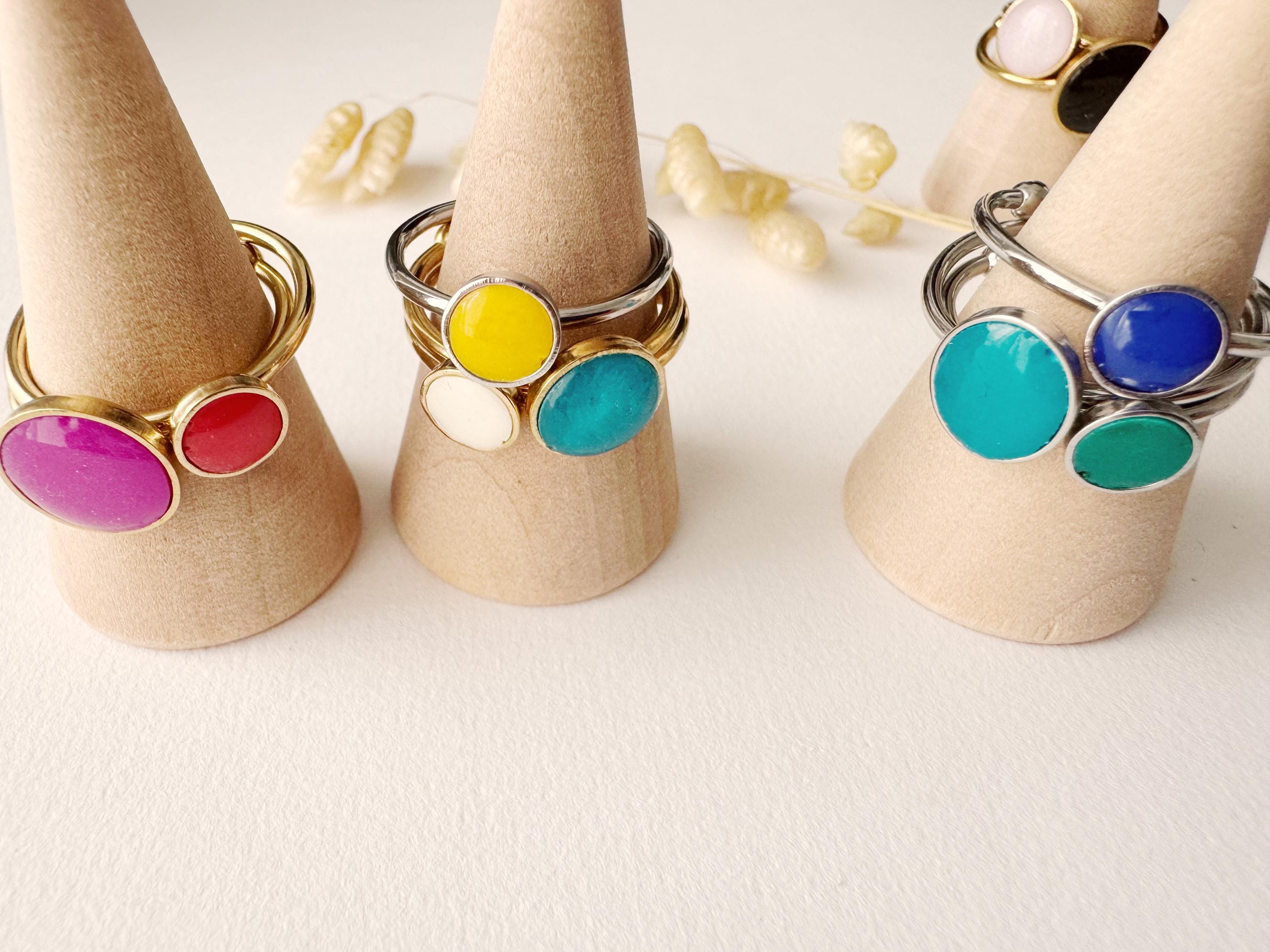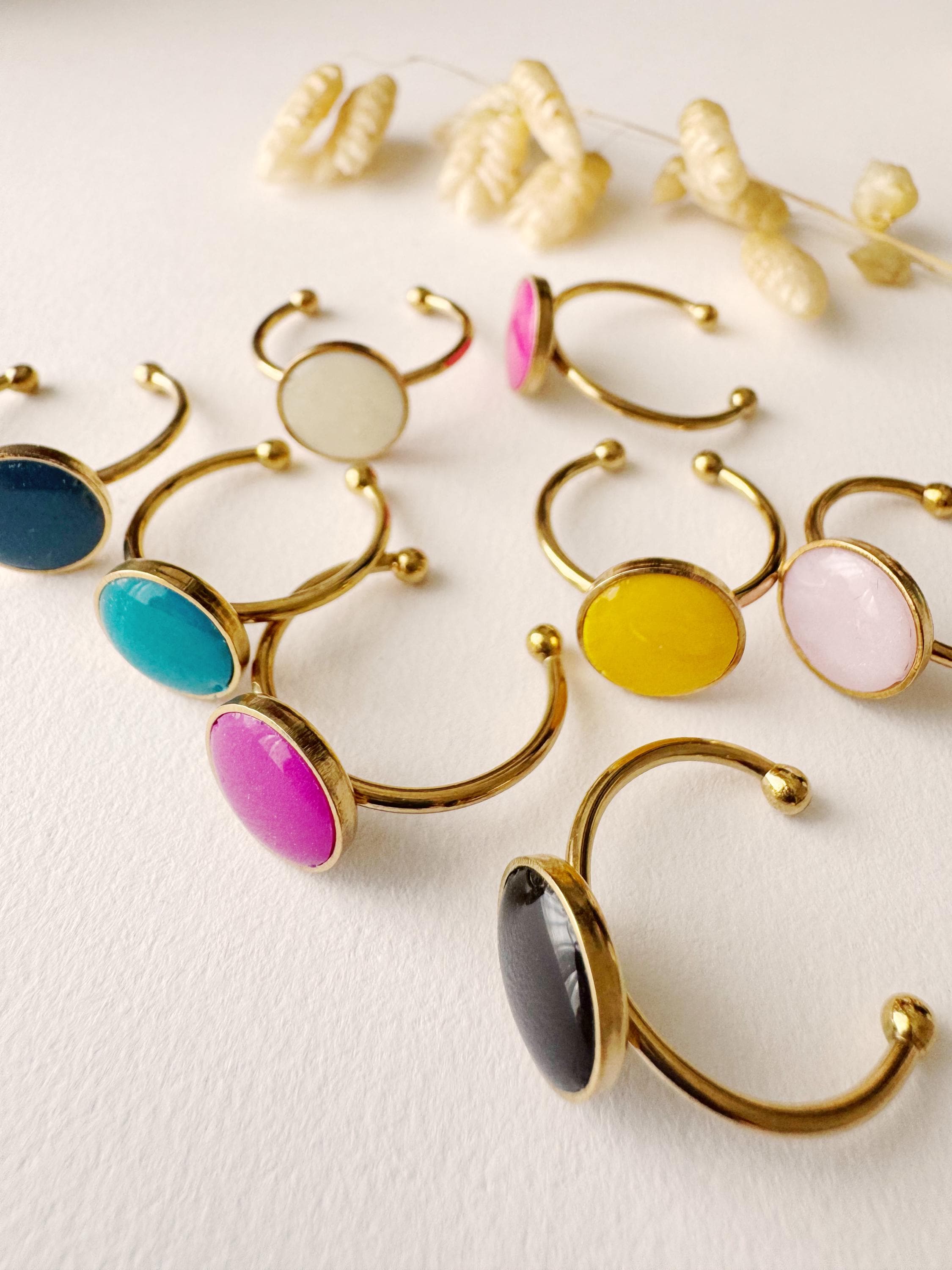 Bijou composé d'un cabochon d'argile recouverte d’une résine qui lui donne brillance, légèreté et une belle finition.